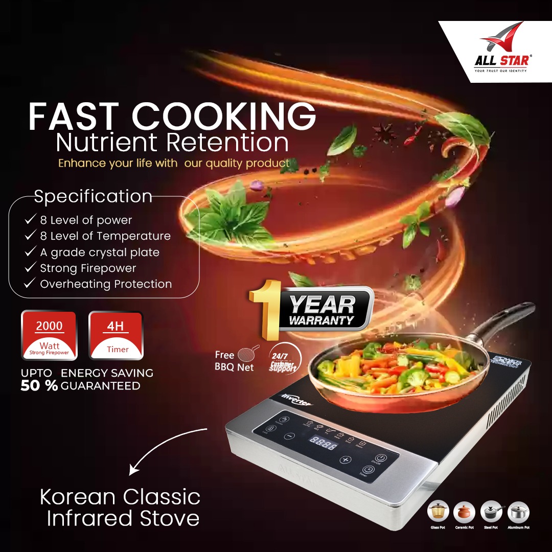 Bring home the perfect blend of tradition and modern technology with the Korean Classic Infrared Stove | 2000 Watt Infrared Plate. Designed for fast, efficient, and uniform heating, this stove delivers 2000 Watts of powerful infrared heat, making everyday cooking quicker and more convenient.
